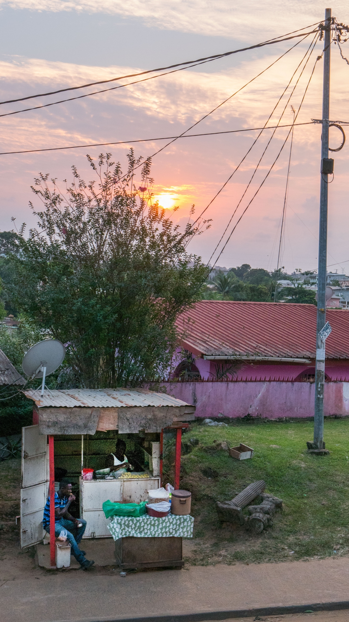 Libreville n’est pas un coup de cœur pour nous, en revanche notre quartier Bel air, oui. À la différence du centre ville, ici pas d’immeuble, ni de large route. Juste de petites maisons colorées avec des toits en tôle. Les maquis sont partout. Ce sont les bistrots d’ici. Avec leurs chaises en plastique, c’est l’endroit où se poser pour boire une Régab, tout en regardant les matchs de la coupe du monde. La Régab c’est LA bière gabonaise. La technique pour se souvenir du nom est de retenir cette phrase : REgarder les GAbonais Boire. Au-delà des maquis, la route verdoyante est bordée de tous petits magasins où on trouve tout ce dont on a besoin (pressing, coiffure, manucure, pédicure, couture, nourriture, garagiste, menuisier, restaurant, …).